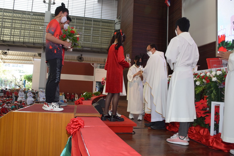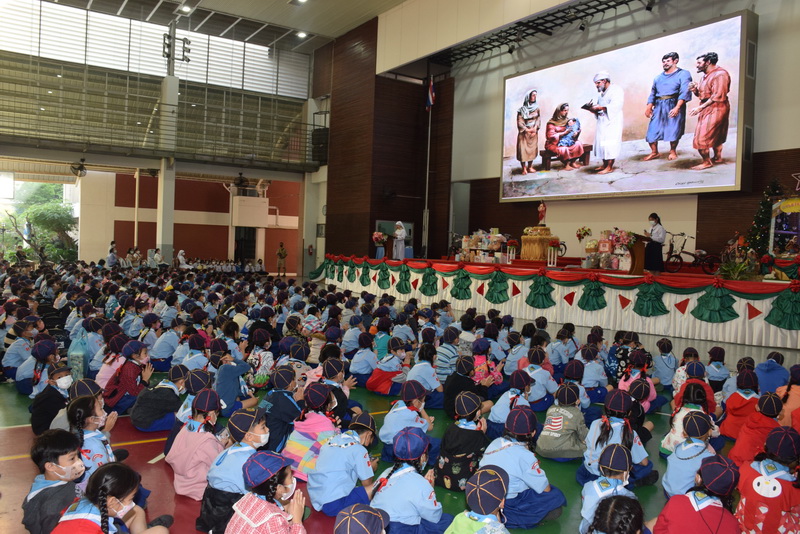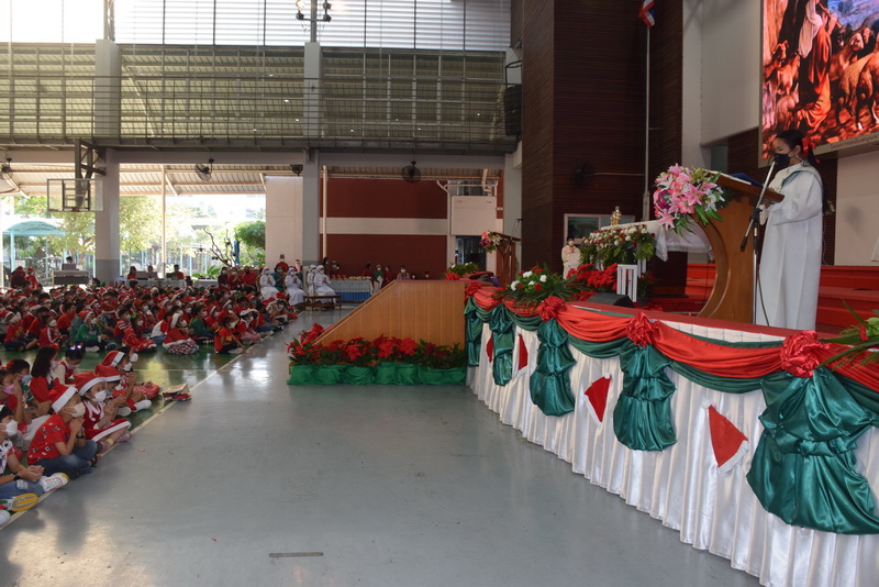 ฝ่ายจิตตาภิบาลร่วมกับฝ่ายกิจการนักเรียน ได้จัดกิจกรรมสมโภชพระคริสตสมภพขึ้นในวันอังคารที่ 20 ถึงวันศุกร์ที่ 23 ธันวาคม 2565 เวลา 8.00-15.00 น. ณ อาคารมารีย์สวรรค์ โดยซิสเตอร์ ดร.พัชรา นันทจินดา ผู้อำนวยการ ซิสเตอร์สุภาพร จันทร์ปาน ที่ปรึกษาฝ่ายจิตตาภิบาล พร้อมด้วยผู้แทนครูและนักเรียน เข้าร่วมวจนพิธีการรมตรีวาร ซึ่งเป็นเทศกาลแห่งความรักและการแบ่งปัน โอกาสที่พระเยซูเจ้าทรงบังเกิดเป็นมนุษย์