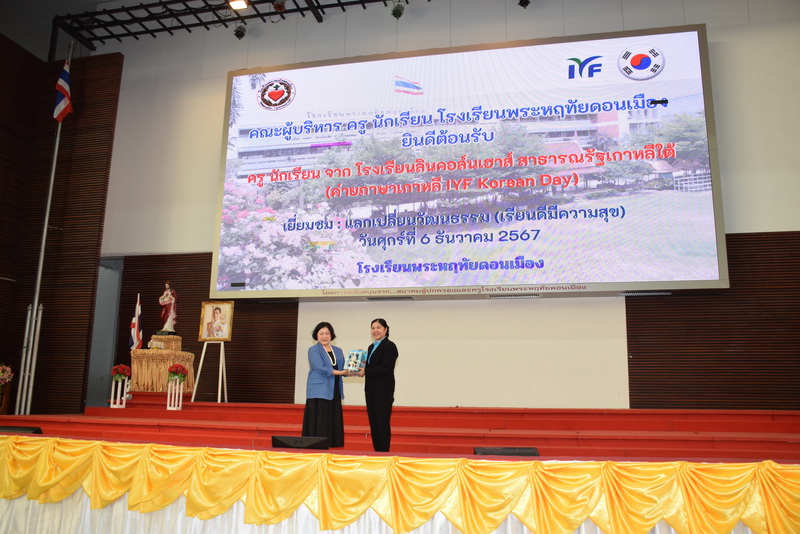 ในวันศุกร์ที่ 6 ธันวาคม 2567 คุณครูเวียงแก้ว คำปันทิพย์ ผู้ช่วยผู้อำนวยการฝ่ายวิชาการ โรงเรียนพระหฤทัยดอนเมือง ได้ให้การต้อนรับ ครู นักเรียน จากสาธารณรัฐเกาหลีใต้ จำนวน 35 คน ได้เข้าเยี่ยมชมและแลกเปลี่ยนเรียนรู้วัฒนธรรมและเสริมสร้างภาษา ระหว่างประเทศไทยและสาธารณรัฐเกาหลีใต้