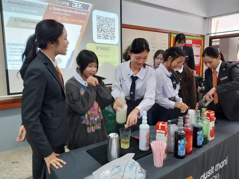 วันที่ 3 ธันวาคม 2568 โรงเรียนพระหฤทัยดอนเมือง ได้จัดกิจกรรมแนะแนวประชาสัมพันธ์หลักสูตร (workshop) ให้กับนักเรียนระดับชั้นมัธยมศึกษาปีที่ 6 โดยมหาวิทยาลัยดุสิตธานี สาขาวิชาการจัดการโรงแรม โดยให้นักเรียนได้เรียนรู้อาชีพการผสมเครื่องดื่ม บาร์เทนเดอร์ (Bartender) เพื่อเปิดโอกาสทางการศึกษาให้กับนักเรียน ในการศึกษาต่อในระดับอุดมศึกษา โดยมีครูเบญจวรรณ บุญจง เป็นผู้ดูแลนักเรียน