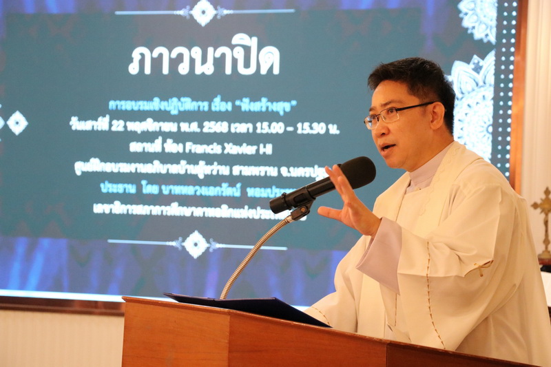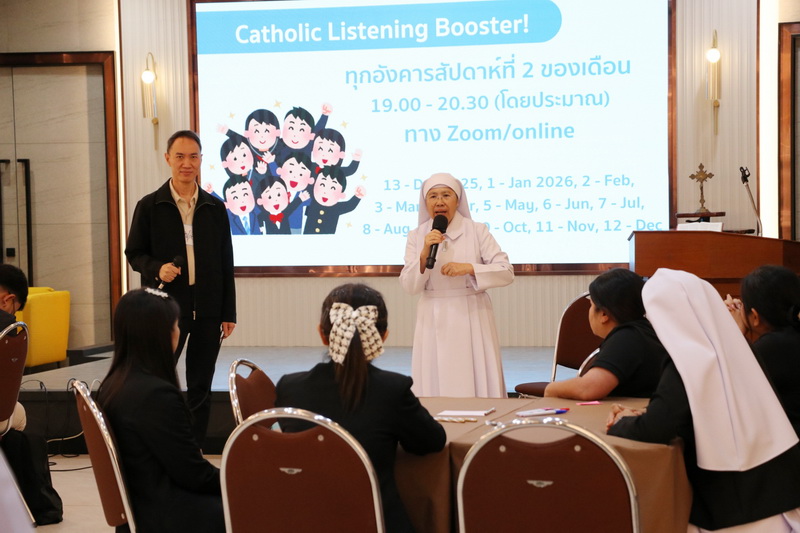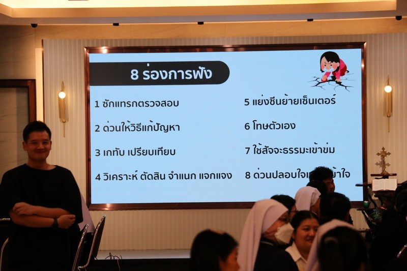 เมื่อวันที่ 21-22 พฤศจิกายน 2568 ฝ่ายบริหารได้ส่งบุคลากรเข้ารับการอบรมเชิงปฏิบัติการ เรื่อง “ฟังสร้างสุข” โดยฝ่ายวิชาการ สภาการศึกษาคาทอลิกแห่งประเทศไทยและธนาคารจิตอาสาและความสุขประเทศไทย ในการสนับสนุนของสำนักงานกองทุนสนับสนุนการสร้างเสริมสุขภาพ (สสส.) จัดหลักสูตรพัฒนาศักยภาพครูฟังด้วยหู ดูด้วยใจ ชวนทุกคนมาเป็นผู้ฟังที่ดี ด้วยหัวใจการฟัง 3 ข้อ คือ