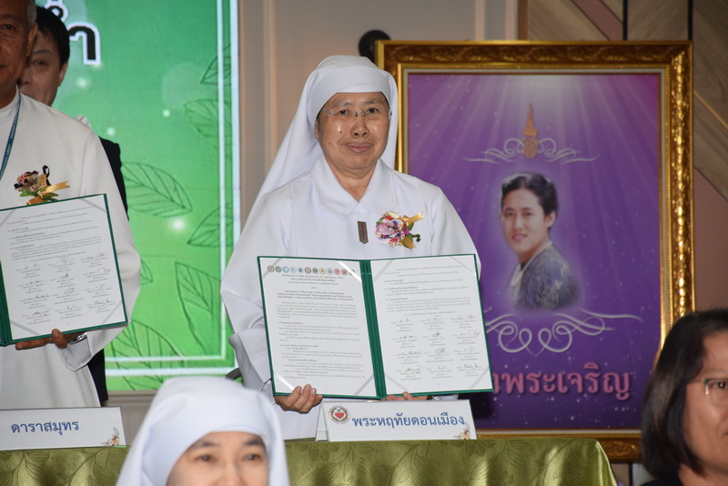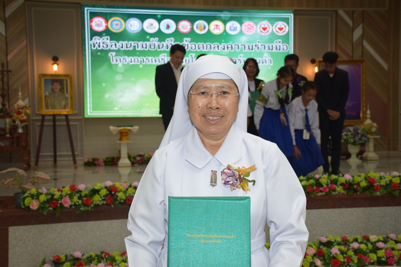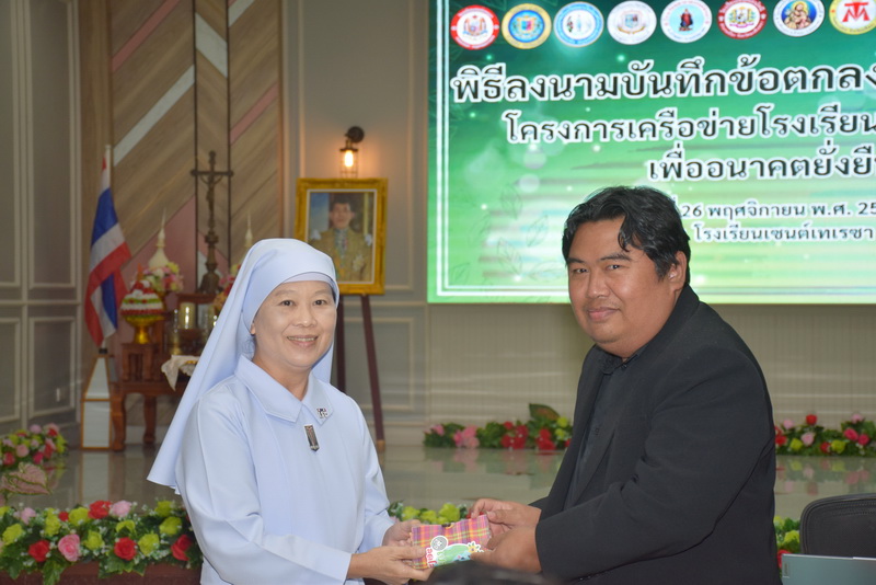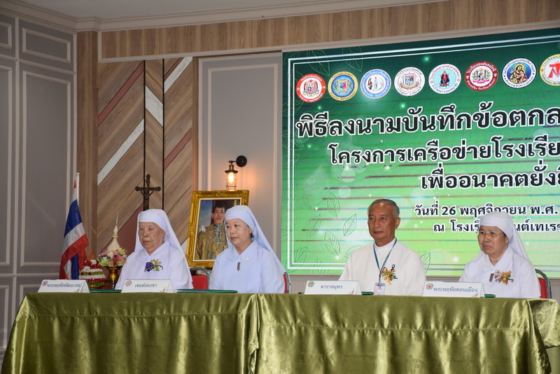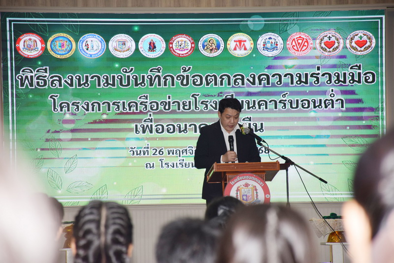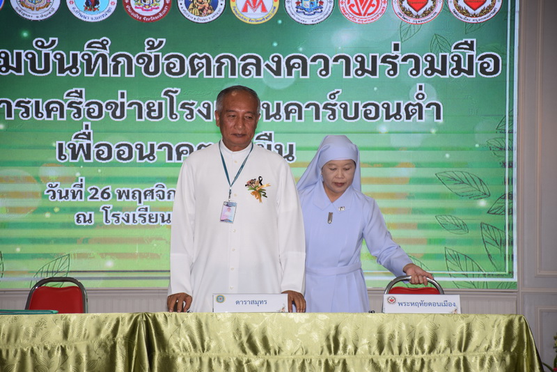 วันพุธที่ 26 พฤศจิกายน 2568 ซิสเตอร์ ดร.ชวาลา เวชยันต์ ผู้รับใบอนุญาต/ผู้จัดการ เข้าร่วมการลงนามบันทึกตกลงความร่วมมือ “โครงการเครือข่ายโรงเรียนคาร์บอนต่ำเพื่ออนาคตยั่งยืน (Low-Carbon School Network for Sustainable Future)” ณ ห้องประชุมชั้น 5 อาคารเซนต์แอนดรูว์ โรงเรียนเซนต์เทเรซา โดยมีตัวแทนครูและนักเรียนแกนนำการอนุรักษ์พลังงาน 4 คนคือ