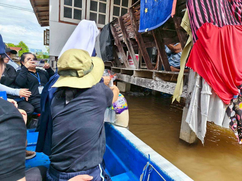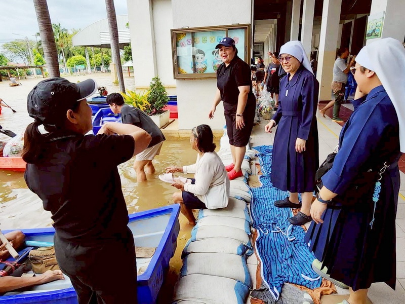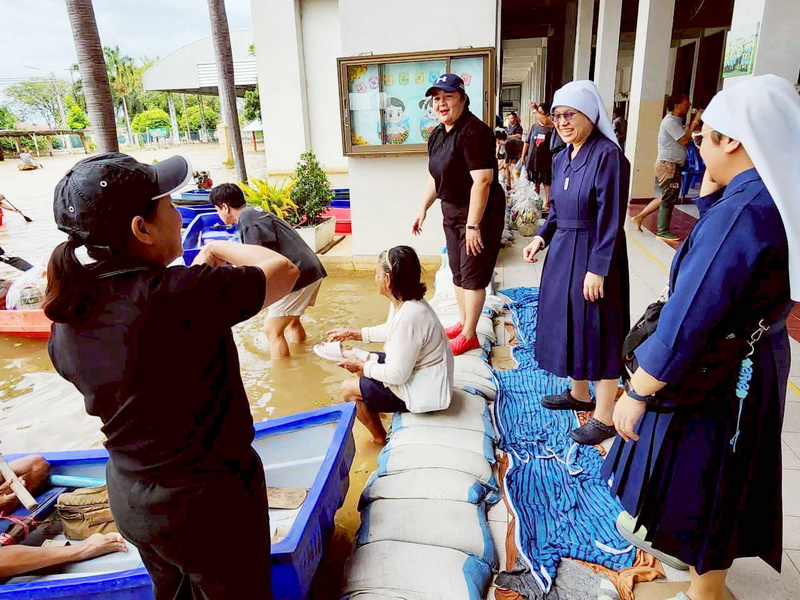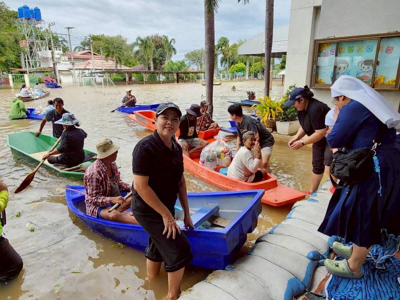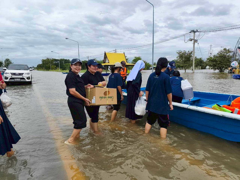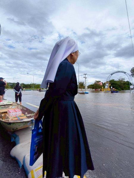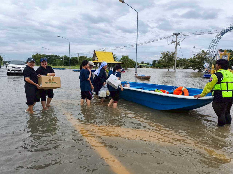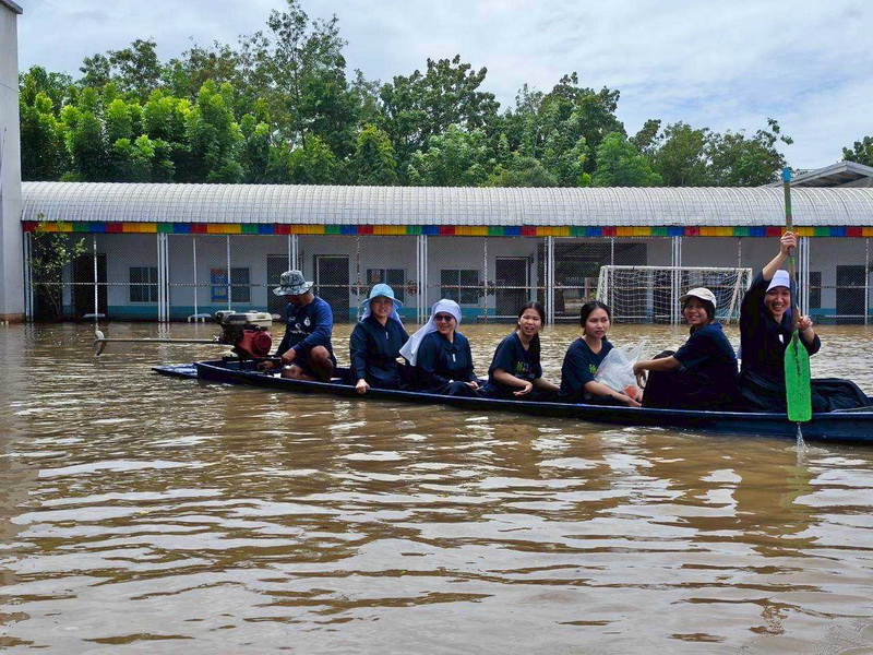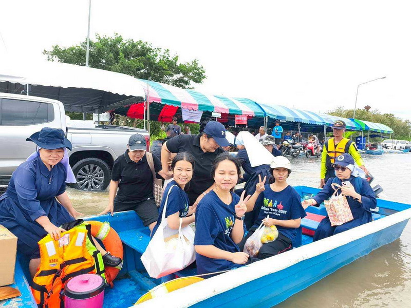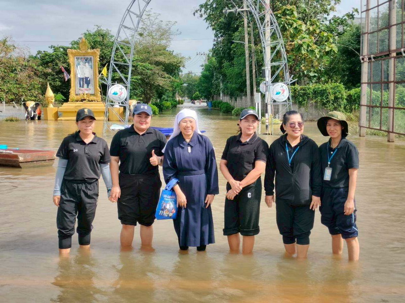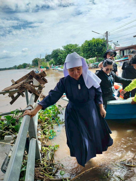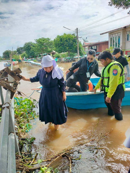 เมื่อวันอังคารที่ 18 พฤศจิกายน 2568 ซิสเตอร์ ดร.ชวาลา เวชยันต์ ผู้จัดการ/ผู้รับใบอนุญาต ซิสเตอร์พรทิพย์ กันทู ที่ปรึกษาฝ่ายจิตตาภิบาล นำผู้แทนครู โรงเรียนพระหฤทัยดอนเมือง เดินทางพร้อมกับคณะภคิณีพระหฤทัยของพระเยซูเจ้าแห่งกรุงเทพฯ เพื่อเยี่ยมเยียน ให้กำลังใจและมอบถุงยังชีพให้กับผู้ประสบอุทกภัยน้ำท่วม ที่บริเวณชุมชนหมู่ 3 ตำบลโรงช้าง วัดพระนามกรเยซูบ้านแป้ง จ.สิงห์บุรี "ในยามน้ำท่วมสูง สิ่งที่ต้องสูงยิ่งกว่าคือน้ำใจ การให้คือการเติมเต็มพลังชีวิตให้แก่กัน" ขอพระหฤทัยอำนวยพระพรทุกคนค่ะ