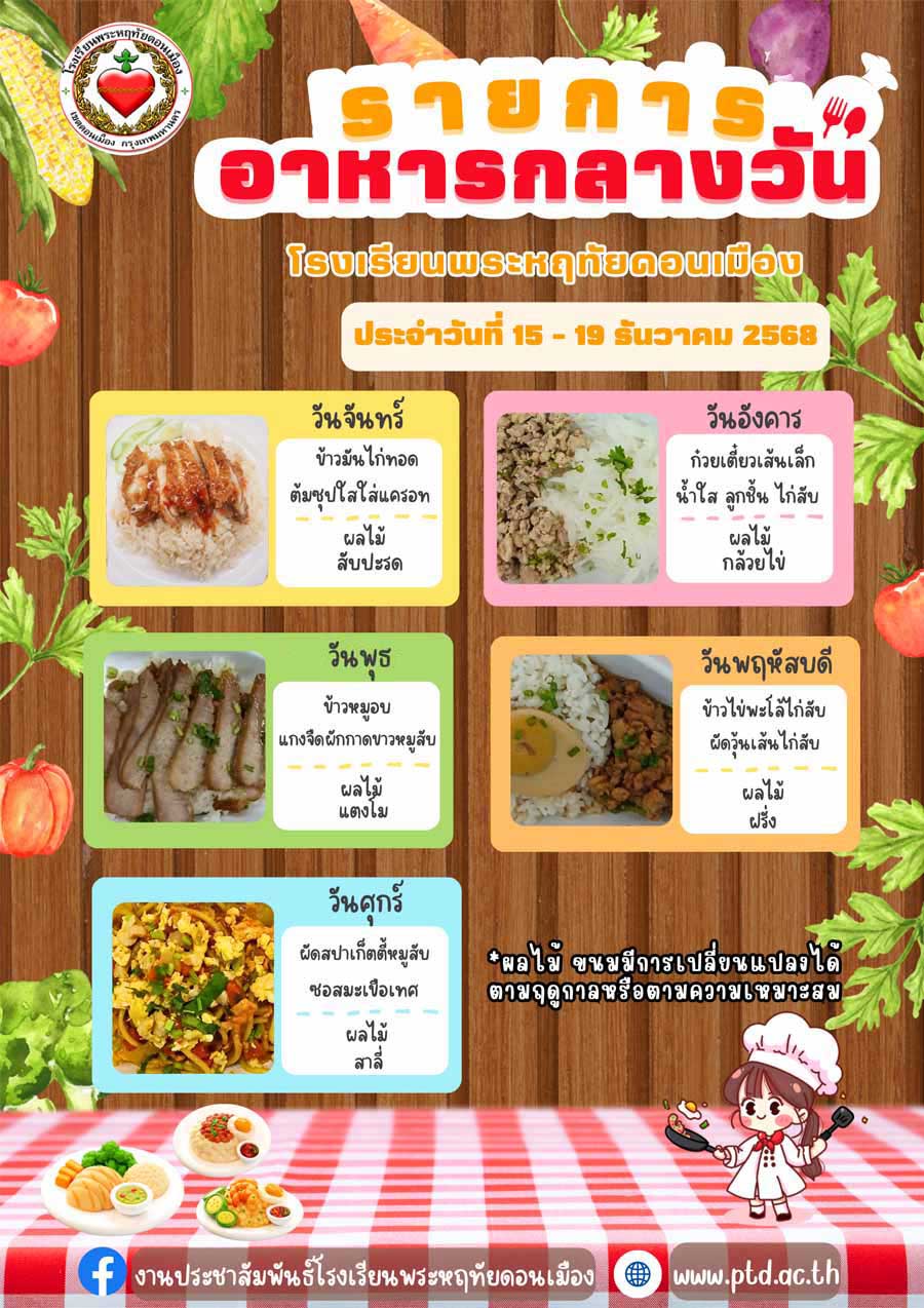 อาหารกลางวันระดับประถมศึกษา ภาคเรียนที่ 2 ปีการศึกษา 2568 เดือนธันวาคม 2568 |
