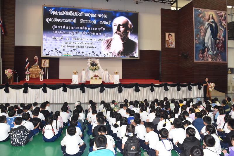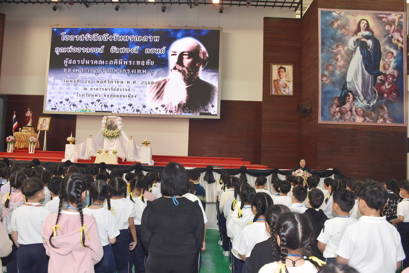 วันพุธที่ 26 พฤศจิกายน 2568 ซิสเตอร์รัชนี ตระกูลเง็ก ผู้อำนวยการโรงเรียน เป็นประธาน ในวจนพิธีกรรม โอกาสรำลึกถึงวันมรณกรรมของคุณพ่ออาลอยส์ ซีอุส อัลฟองส์ ดอนต์ (คุณพ่อปีโอ) ผู้รื้อฟื้นและสถาปนาคณะภคินีพระหฤทัยของพระเยซูเจ้าแห่งกรุงเทพฯ กิจกรรมนี้ได้จัดขึ้นที่อาคารมารีย์สวรรค์ โดยมีคุณครูและนักเรียนทุกคนร่วมในกิจกรรม