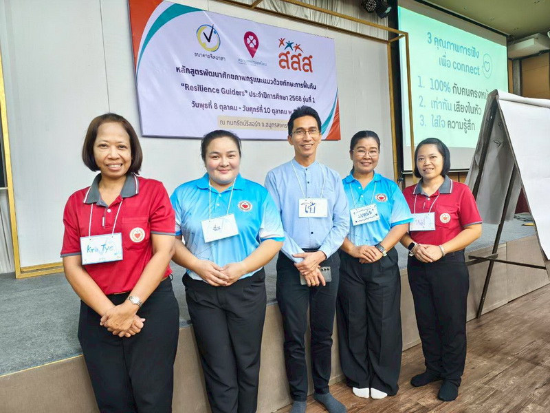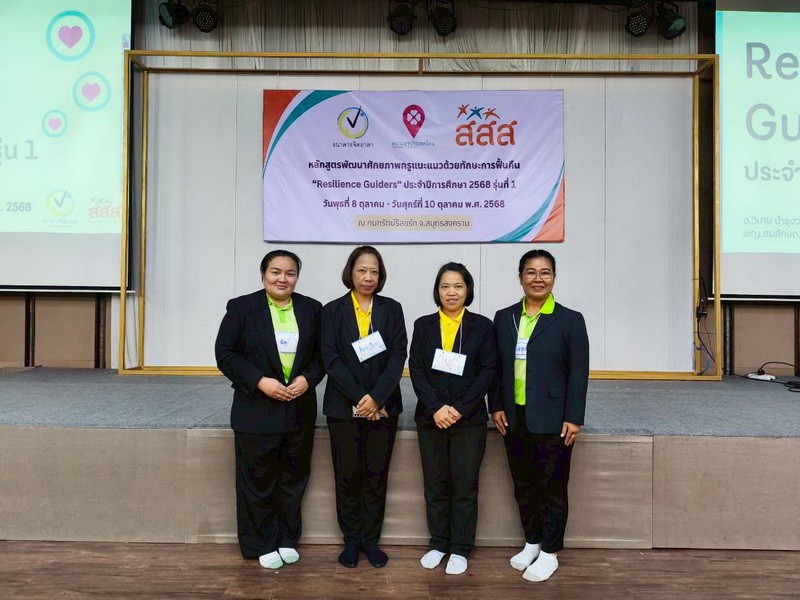 เมื่อวันพุธที่ 8 - วันศุกร์ที่ 10 ตุลาคม 2568 ฝ่ายบริหารได้ส่งบุคลากรเข้ารับการอบรม ในโครงการพัฒนาจิตด้วยชีวิตสัมพันธ์เชื่อมโยง โดยธนาคารจิตอาสาและความสุขประเทศไทย ในการสนับสนุนของสำนักงานกองทุนสนับสนุนการสร้างเสริมสุขภาพ (สสส.) จัดหลักสูตรพัฒนาศักยภาพ ครูแนะแนวด้วยทักษะการฟื้นคืนและส่งเสริมการนำไปใช้ในกระบวนการแนะแนวในการดูแลจิตใจตนเอง ให้ฟื้นคืน ล้มแล้วลุกได้ (resilience) และสามารถใช้ทักษะนี้ดูแลและพัฒนาจิตใจนักเรียนที่เผชิญความทุกข์ พร้อมทั้งหนุนเสริมกระบวนการแนะแนวในโรงเรียนให้สามารถพัฒนาสุขภาวะทางจิตใจของนักเรียนได้ หัวข้อ หลักสูตรพัฒนาศักยภาพครูแนะแนวด้วยทักษะการฟื้นคืน “Resilience Guiders” ประจำปีการศึกษา 2568 รุ่นที่ 1 ณ กนกรัตน์ รีสอร์ท จ.สมุทรสงคราม โดยคุณครูผู้เข้ารับการอบรม 2 ท่านดังนี้