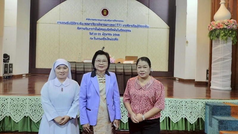ซิสเตอร์พรทิพย์ กันทู ที่ปรึกษาฝ่ายจิตตาภิบาล และคุณครูดาวเรือง ระวังชนม์ เข้าร่วมการอบรมเชิงปฏิบัติการ เรื่อง แผนการจัดการการศึกษาเฉพาะบุคคล ( IEP ) : การจัดการเรียนรู้ที่สอดคล้องกับความต้องการจำเป็นพิเศษของนักเรียนในโรงเรียนเอกชน ระหว่างวันที่ 20 - 22 มิถุนายน 2568 ณ โรงแรมเชียงใหม่ออคิด อำเภอเมืองเชียงใหม่ จังหวัดเชียงใหม่