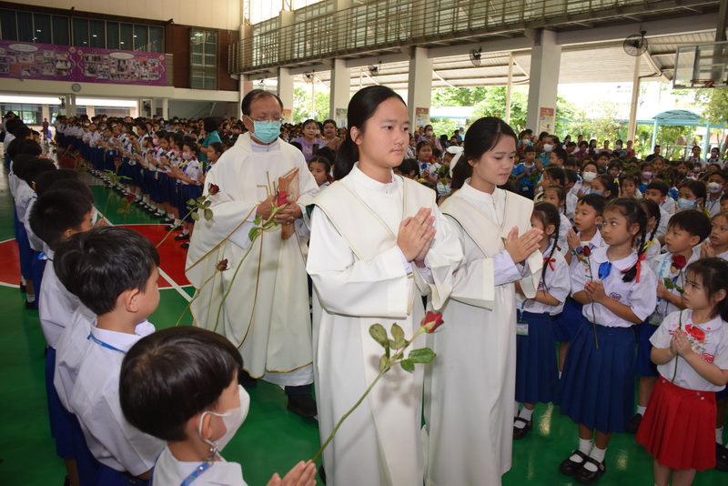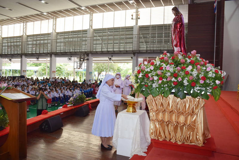 วันศุกร์ที่ 27 มิถุนายน 2568 เวลา 08.00 น. ฝ่ายจิตตาภิบาลโรงเรียนพระหฤทัยดอนเมือง ได้จัดให้มีพิธีบูชาขอบพระคุณโอกาสวันสมโภชดวงพระหฤทัยอันศักดิ์สิทธิ์ยิ่งของพระเยซูเจ้า องค์อุปถัมภ์ของโรงเรียน จัดขึ้น ณ อาคารมารีย์สวรรค์ โดยมีซิสเตอร์ผู้บริหาร คณะคุณครู บุคลากรทุกฝ่าย และนักเรียนทุกคนได้เข้าร่วมกิจกรรมในครั้งนี้ และหลังกิจกรรมคณะผู้บริหารได้แจกไอศกรีมให้กับคุณครูและนักเรียนทุกคนได้รับประทานกันอย่างมีความสุข