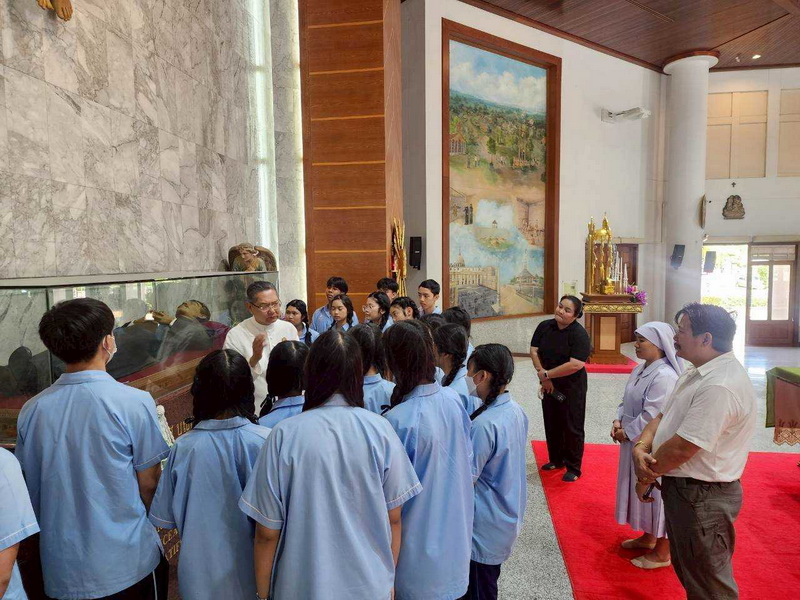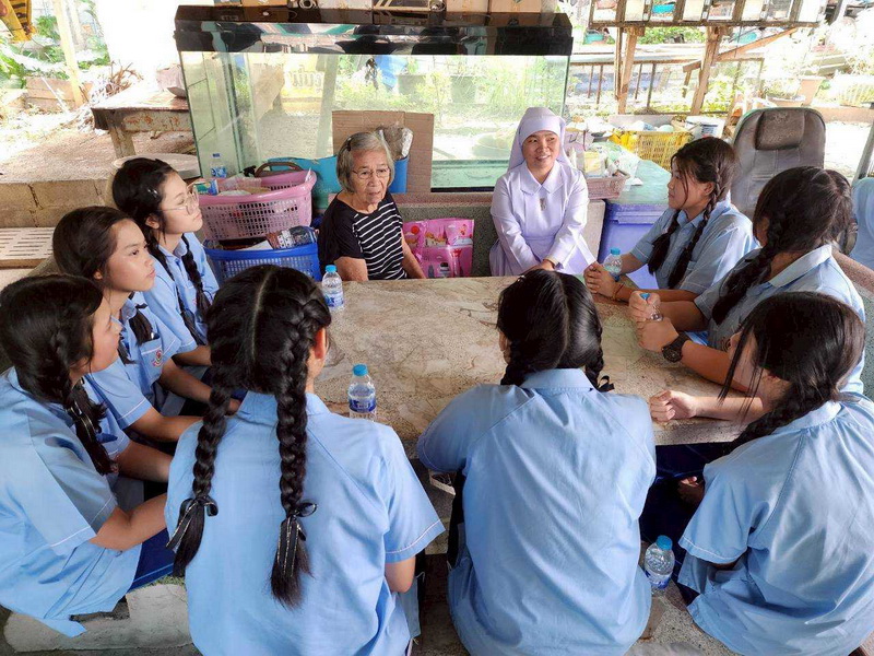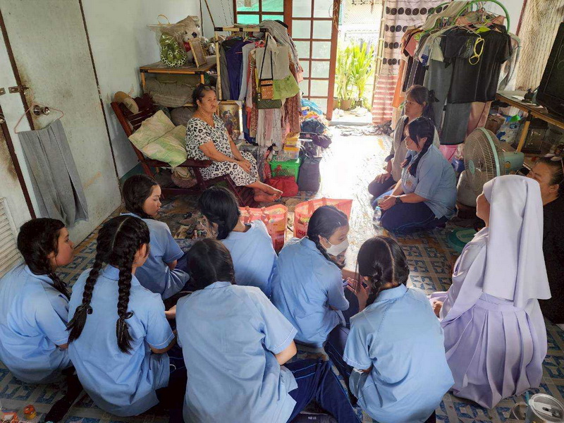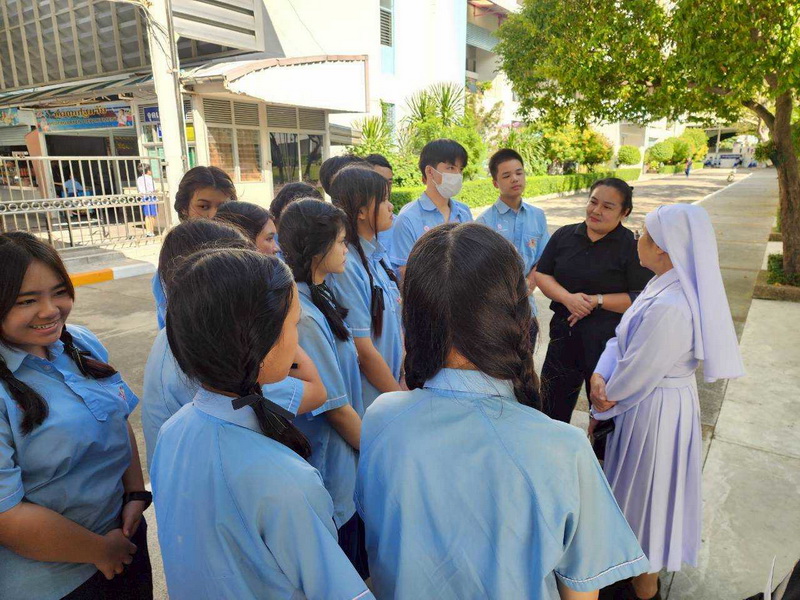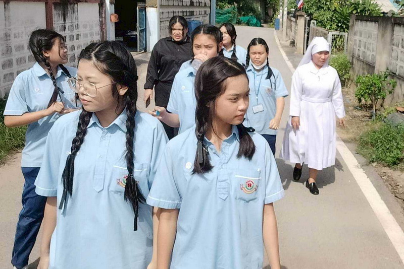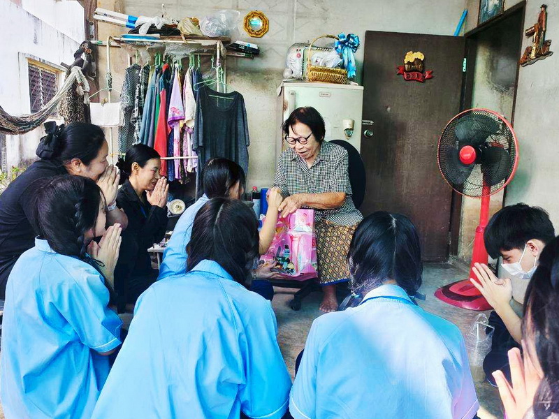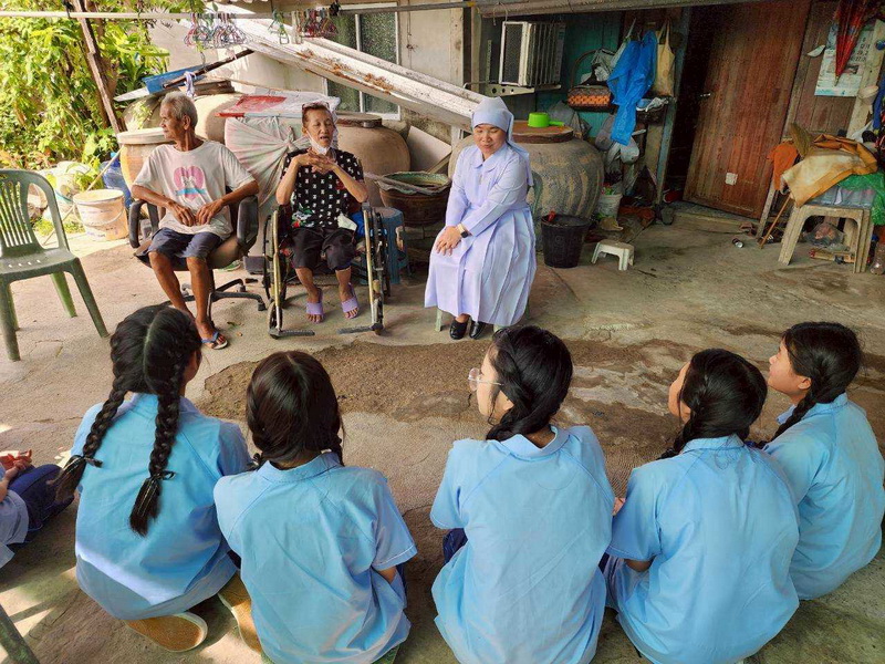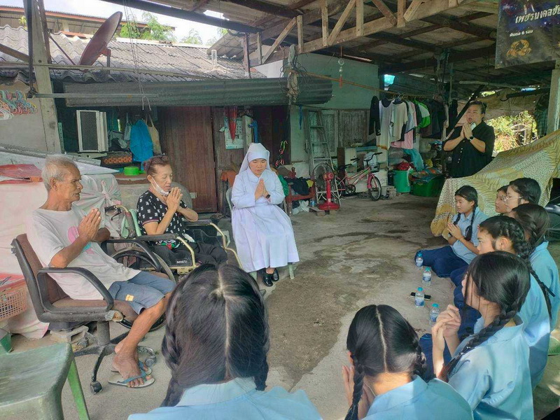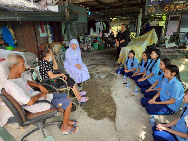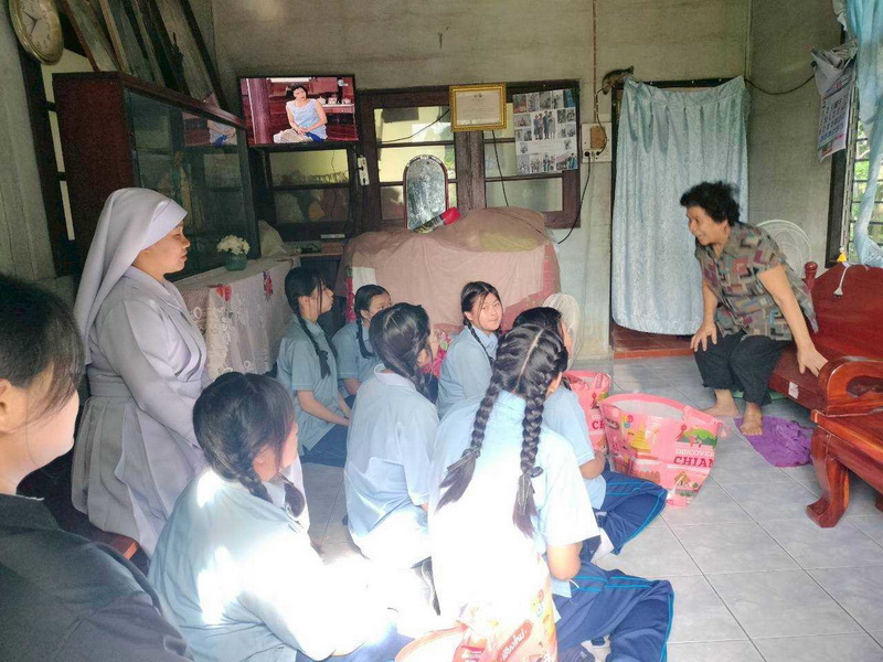 วันพุธที่ 19 พฤศจิกายน 2568 ซิสเตอร์พรทิพย์ กันทู ที่ปรึกษาฝ่ายจิตตาภิบาล โรงเรียนพระหฤทัยดอนเมือง นำผู้แทนคุณครูและผู้แทนนักเรียน ระดับชั้นมัธยมปีที่ 3/1 ออกเยี่ยมชุมชนและให้กำลังใจผู้สูงอายุ บริเวณชุมชนเปโตร ซอย 6 จังหวัดนครปฐม ในการออกเยี่ยมผู้สูงอายุในชุมชน สอดคล้องกับค่านิยม 8H ของโรงเรียน ได้แก่ Heart ความรัก ความเมตตา และ Hope ความหวัง การให้กำลังใจ และยังเป็นการสร้างความสัมพันธ์อันดีระหว่างวัย นักเรียนรู้จักการแบ่งปันเห็นอกเห็นใจ และช่วยเหลือผู้อื่น และถือโอกาสให้นักเรียนได้เรียนรู้เรื่องราว ประวัติของ คุณพ่อนิโคลาส บุญเกิด กฤษบำรุง ที่สักการสถานบุญราศี