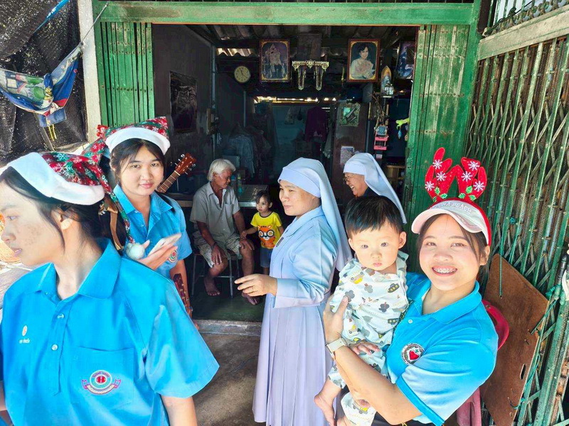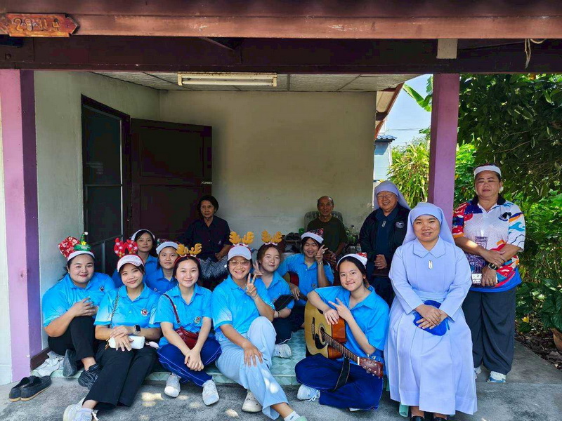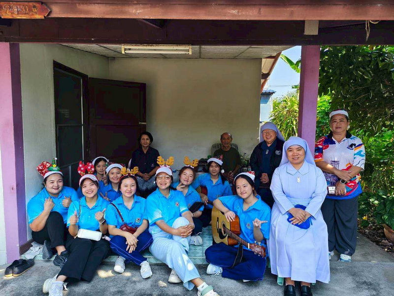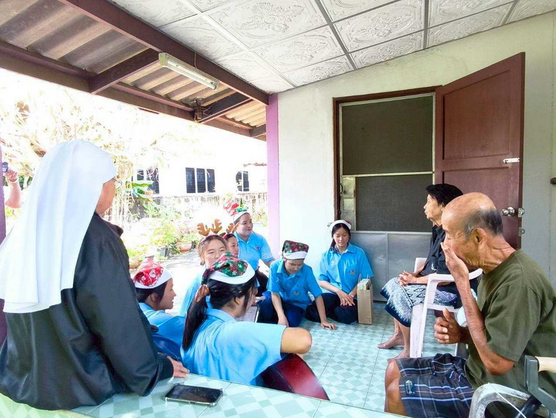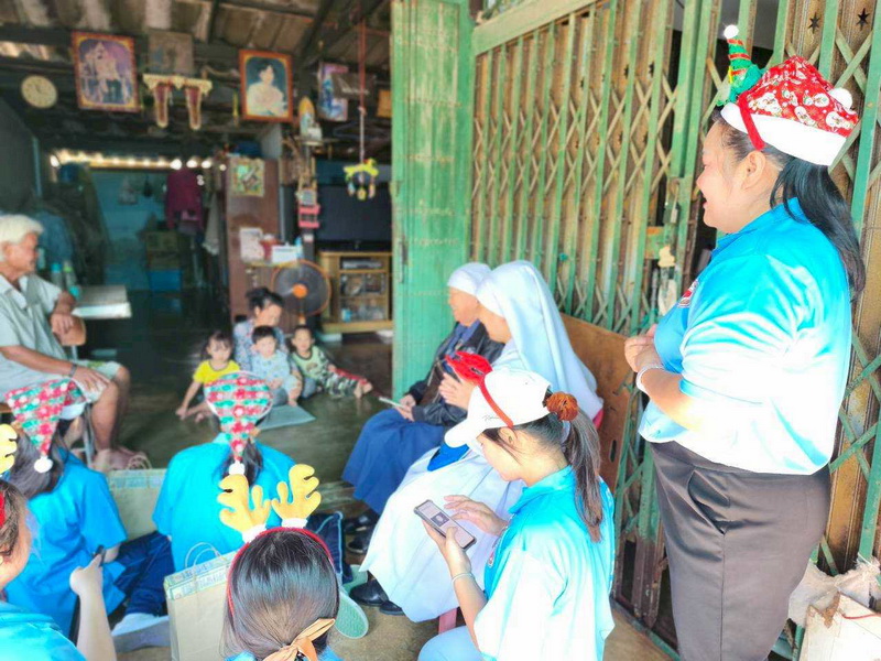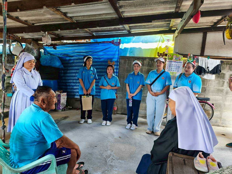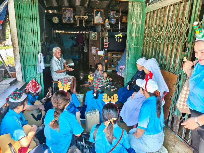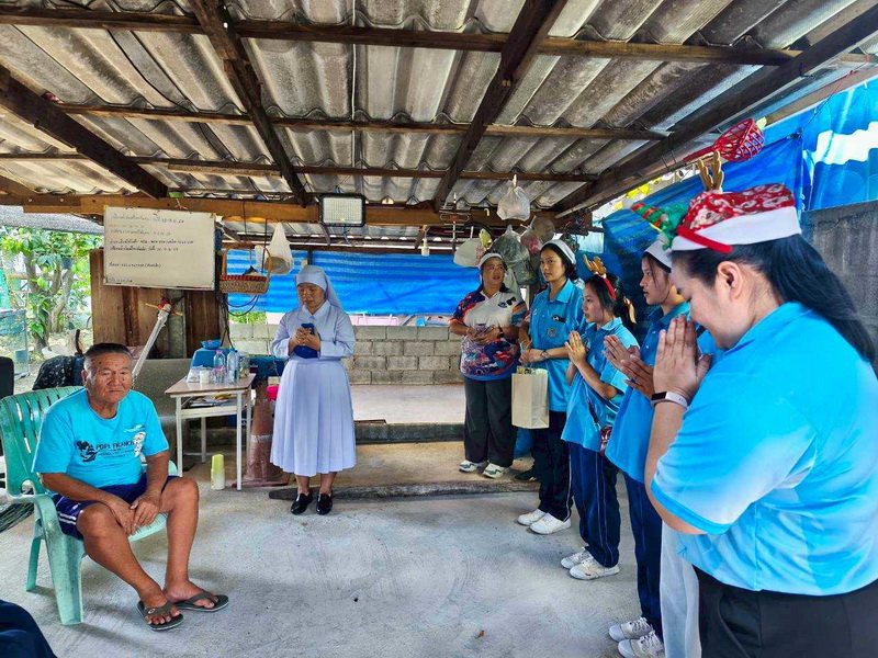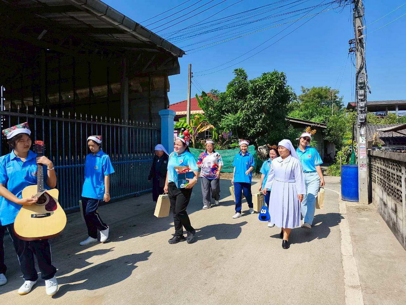 วันพุธที่ 10 ธันวาคม 2568 ซิสเตอร์พรทิพย์ กันทู ที่ปรึกษาฝ่ายจิตตาภิบาล ซิสเตอร์อนงค์ สุขสุถ้อย นำผู้แทนคุณครูและผู้แทนนักเรียน ออกเยี่ยมชุมชนและให้กำลังใจผู้สูงอายุ บริเวณชุมชนคลองนา เปโตร ซอย 6 จังหวัดนครปฐม ประจำเดือนธันวาคม และส่งความสุขโอกาสวันคริสมาสต์และสวัสดีปีใหม่ที่จะมาถึงด้วย
