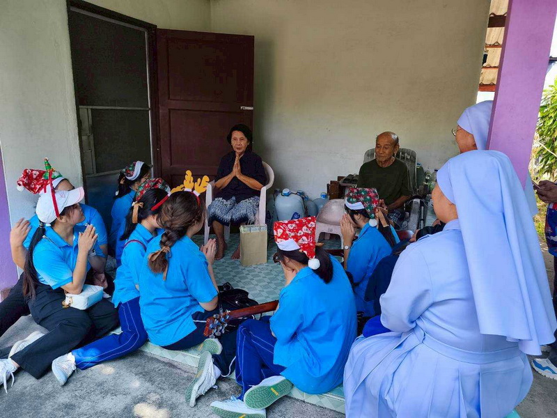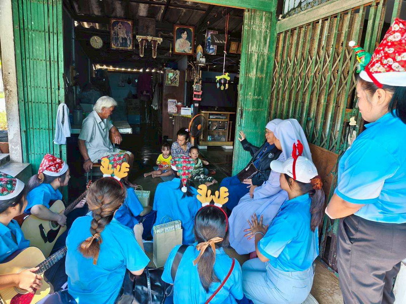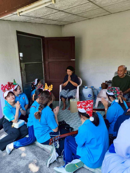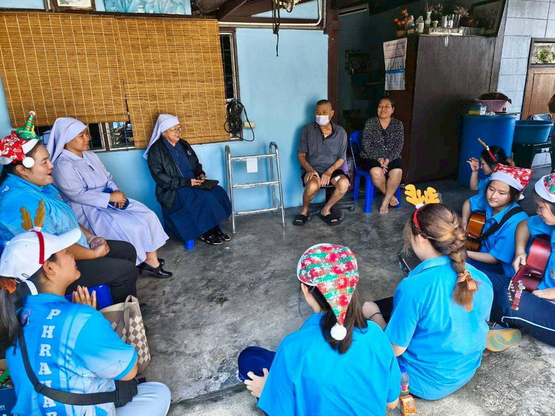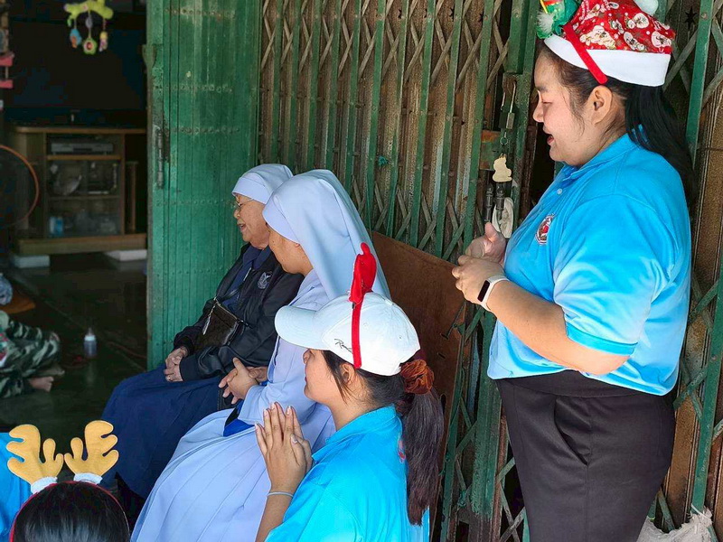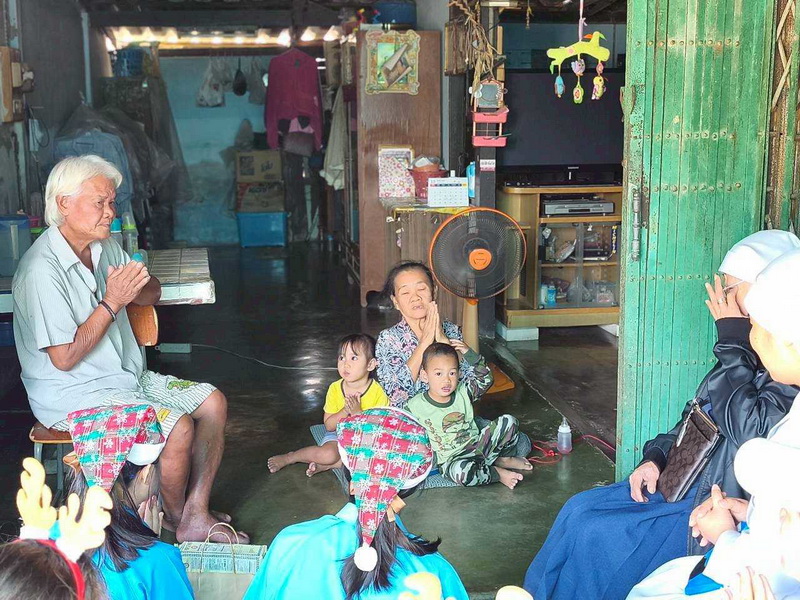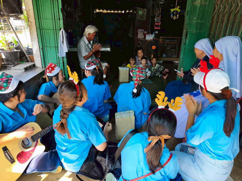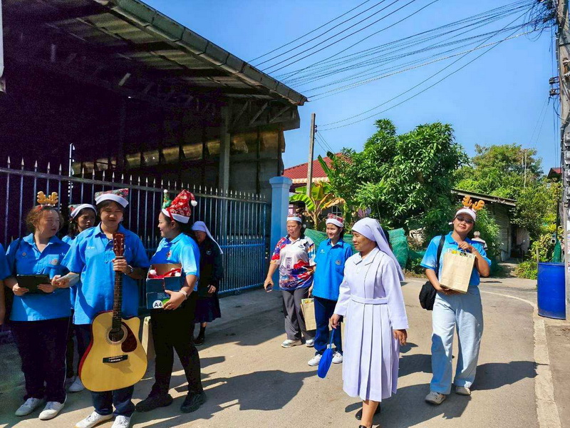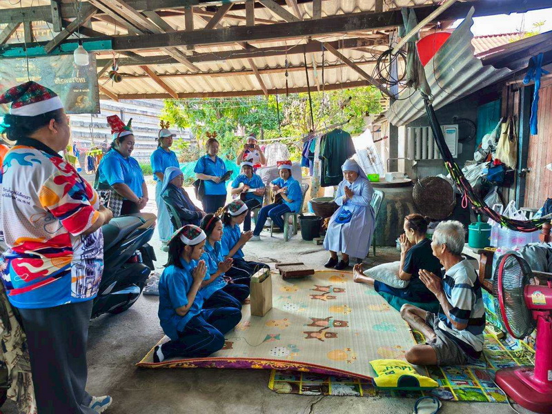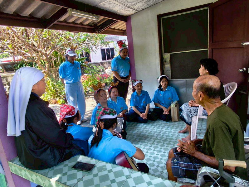 วันพุธที่ 10 ธันวาคม 2568 ซิสเตอร์พรทิพย์ กันทู ที่ปรึกษาฝ่ายจิตตาภิบาล ซิสเตอร์อนงค์ สุขสุถ้อย นำผู้แทนคุณครูและผู้แทนนักเรียน ออกเยี่ยมชุมชนและให้กำลังใจผู้สูงอายุ บริเวณชุมชนคลองนา เปโตร ซอย 6 จังหวัดนครปฐม ประจำเดือนธันวาคม และส่งความสุขโอกาสวันคริสมาสต์และสวัสดีปีใหม่ที่จะมาถึงด้วย