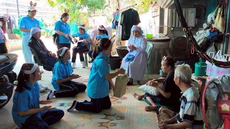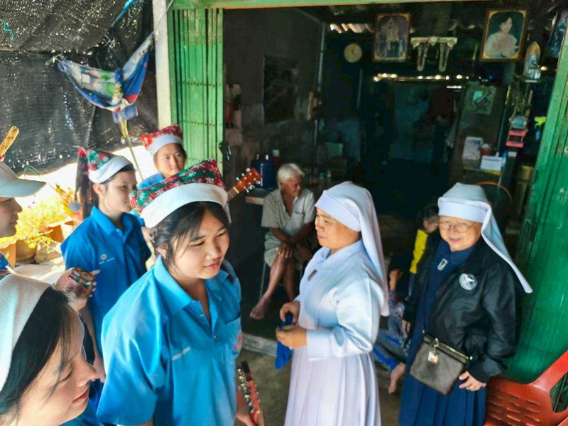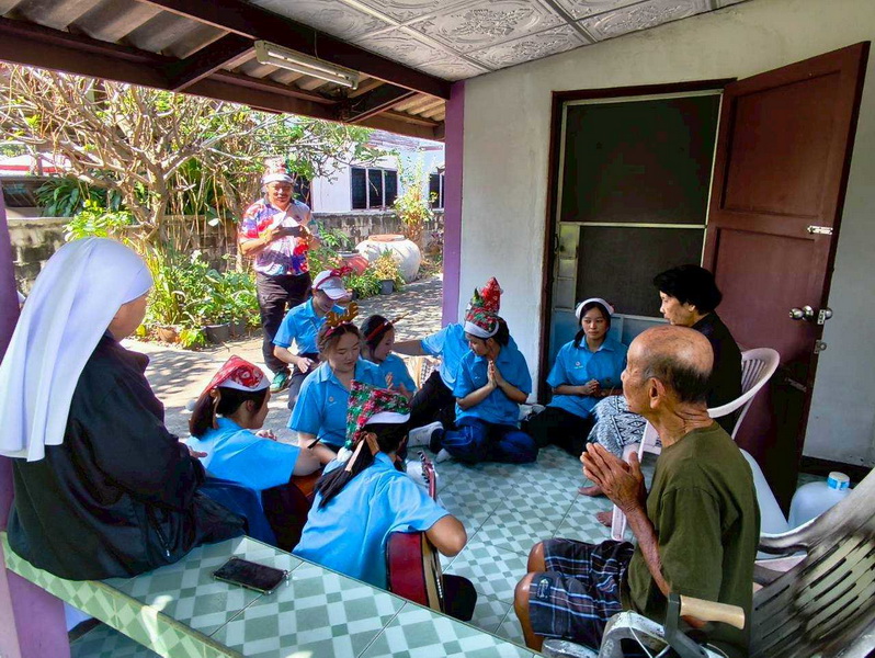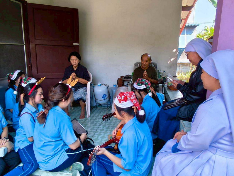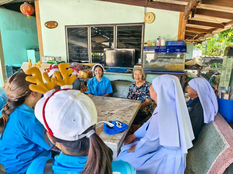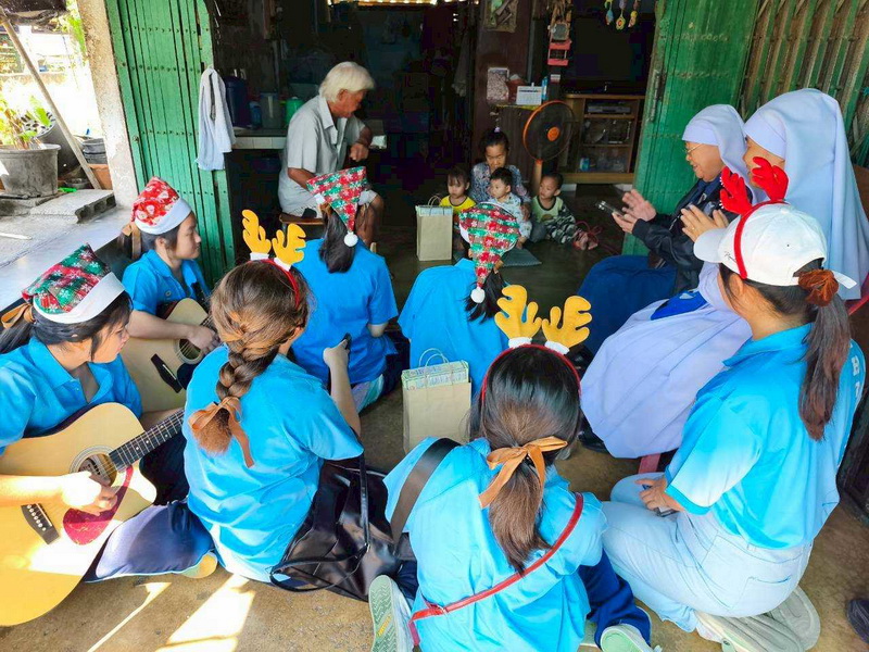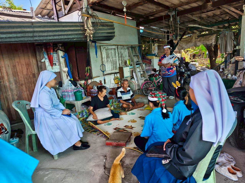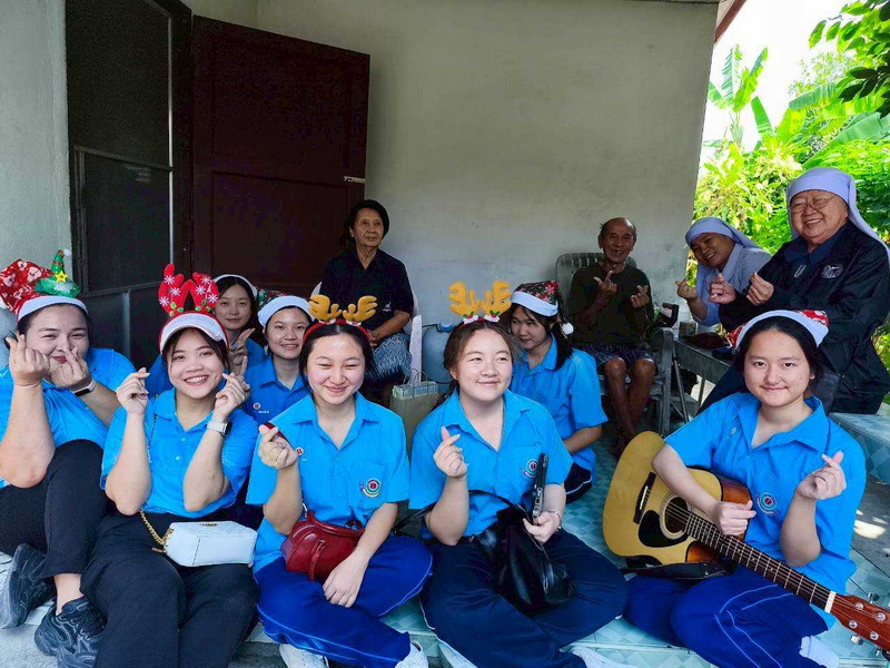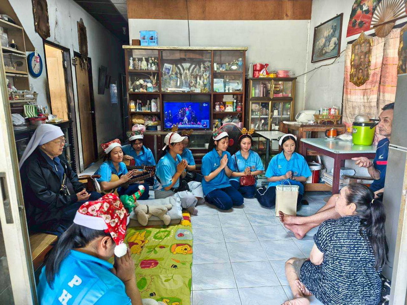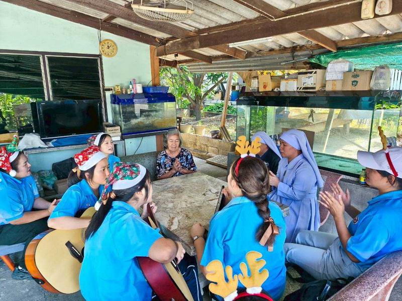 วันพุธที่ 10 ธันวาคม 2568 ซิสเตอร์พรทิพย์ กันทู ที่ปรึกษาฝ่ายจิตตาภิบาล ซิสเตอร์อนงค์ สุขสุถ้อย นำผู้แทนคุณครูและผู้แทนนักเรียน ออกเยี่ยมชุมชนและให้กำลังใจผู้สูงอายุ บริเวณชุมชนคลองนา เปโตร ซอย 6 จังหวัดนครปฐม ประจำเดือนธันวาคม และส่งความสุขโอกาสวันคริสมาสต์และสวัสดีปีใหม่ที่จะมาถึงด้วย