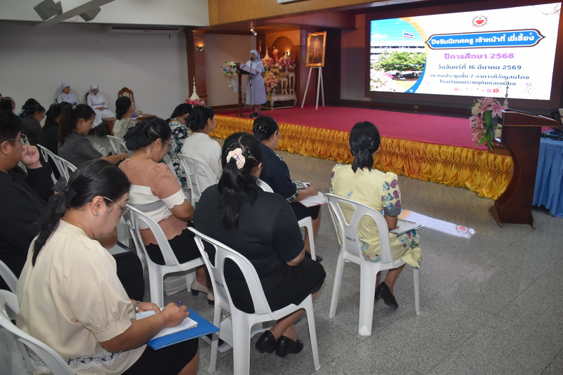 เมื่อวันจันทร์ที่ 16 มกราคม 2569 โรงเรียนพระหฤทัยดอนเมือง โดยท่านผู้บริหาร ซิสเตอร์ ดร.ชวาลา เวชยันต์ ผู้รับใบอนุญาต / ผู้จัดการ ซิสเตอร์ รัชนี ตระกูลเง็ก ผู้อำนวยการ ซิสเตอร์พรทิพย์ กันทู ที่ปรึกษางานจิตตาภิบาล/บ้านมูลนิธิ ได้กำหนดให้มีงานปัจฉิมนิเทศครู เจ้าหน้าที่ พี่เลี้ยง ประจำปีการศึกษา 2568 เพื่อเปิดโอกาสให้บุคลากรฝ่ายในต่าง ๆ ได้นำเสนอผลสัมฤทธิ์ของการปฏิบัติงานตามโครงการและงานของแต่ละฝ่าย พร้อมทั้งมอบรางวัล เพื่อเป็นขวัญเและกำลังใจในการทำงาน ให้กับบุคลากร ตามโครงการสร้างขวัญกำลังใจ สวัสดิการครู และบุคลากรของฝ่ายบริหารบุคคลและธุรการ ตลอดปีการศึกษา 2568