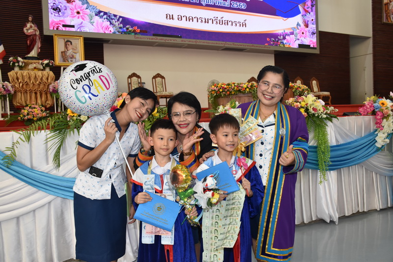 วันเสาร์ที่ 21 กุมภาพันธ์ พ.ศ. 2569 ฝ่ายปฐมวัย โรงเรียนพระหฤทัยดอนเมือง โดยซิสเตอร์ ดร.ชวาลา เวชยันต์ ผู้รับใบอนุญาต/ผู้จัดการ และ ซิสเตอร์ รัชนี ตระกูลเง็ก ผู้อำนวยการ ให้เกียรติเป็นประธานในพิธี ร่วมในงานกิจกรรม “ร่วมยินดีกับความสำเร็จของลูกรัก” ปีการศึกษา 2568 ณ อาคารมารีย์สวรรค์ เพื่อสร้างความภาคภูมิใจให้กับนักเรียนชั้นปฐมวัยปีที่ 3 ที่สำเร็จการศึกษาและกำลังก้าวสู่ระดับชั้นที่สูงขึ้น ขอแสดงความยินดีกับบัณฑิตน้อยทุกคนตลอดระยะเวลาที่อยู่ในรั้วอนุบาลแห่งนี้ เด็ก ๆ ได้เติบโตทั้งความรู้ ความสามารถ และหัวใจที่อ่อนโยนงดงาม เสียงหัวเราะ รอยยิ้ม และความผูกพัน จะยังคงเป็นความทรงจำที่มีค่าของคุณครูเสมอแม้วันนี้จะเป็นเพียงก้าวเล็ก ๆ แต่คือก้าวสำคัญของการเริ่มต้นอนาคตที่ยิ่งใหญ่ ขอให้ลูก ๆ ทุกคนก้าวต่อไปอย่างมั่นใจ กล้าฝัน กล้าทำ และเป็นเด็กดีของทุกคนตลอดไปนะคะ “ครูอาจสอนเด็ก ๆ ได้เพียงช่วงเวลาหนึ่งแต่ความรักและความภูมิใจในตัวลูก ๆ จะอยู่กับครูตลอดไป”ขอแสดงความยินดีจากหัวใจ