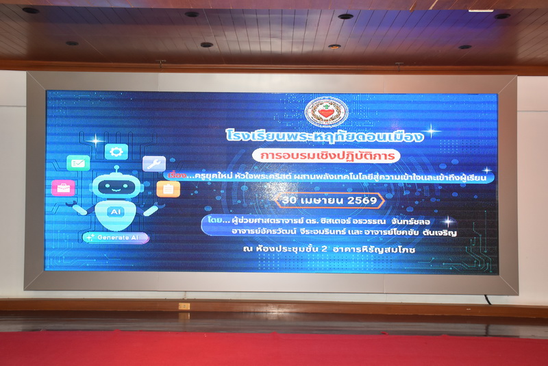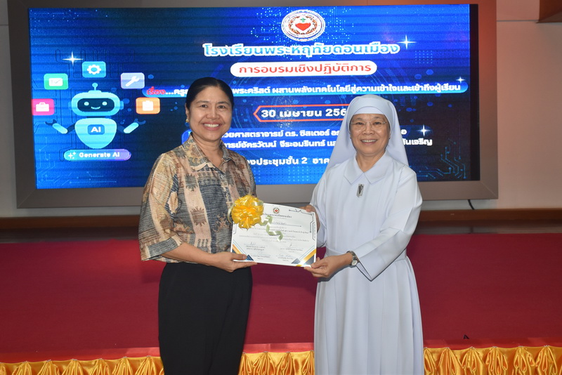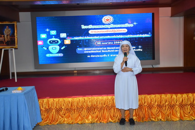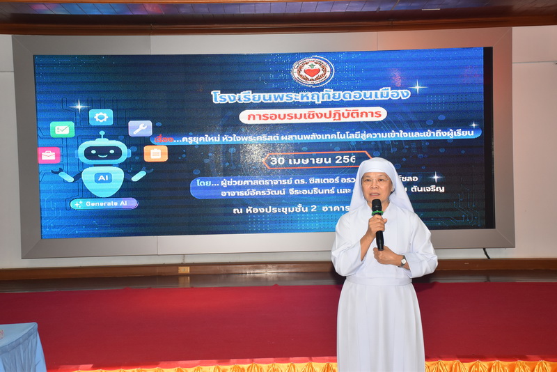 เมื่อวันที่ 30 เมษายน 2569 โรงเรียนพระหฤทัยดอนเมือง จัดอบรมครูและบุคลากร ในเรื่อง ครูยุคใหม่ หัวใจพระคริสต์ ผสานพลังเทคโนโลยีสู่ความเข้าใจและเข้าถึงผู้เรียน โดยมีท่านอธิการ ซิสเตอร์ ดร.ชวาลา เวชยันต์ ผู้รับใบอนุญาต/ผู้จัดการ กล่าวต้อนรับและเปิดการอบรม ซิสเตอร์รัชนี ตระกูลเง็ก ผู้อำนวยการ และซิสเตอร์พรทิพย์ กันทู ที่ปรึกษางานจิตตาภิบาล/บ้านมูลนิธิ เข้าร่วมการอบรม มีคณะวิทยากร ผู้ช่วยศาสตราจารย์ ซิสเตอร์ ดร. อรวรรณ จันทร์ชะลอ , อาจารย์อัครวัฒน์ จีระอมรินทร์ และ อาจารย์โชคชัย ตันเจริญ เป็นผู้ให้ความรู้ ในยุคปัจจุบันที่เทคโนโลยีมีความก้าวหน้าอย่างรวดเร็ว ปัญญาประดิษฐ์ หรือ AI เข้ามามีบทบาทสำคัญในหลายด้านของชีวิต รวมถึงการจัดการศึกษา ปัญญาประดิษฐ์ช่วยสนับสนุนการประมวลผลข้อมูลในด้านต่างๆ เช่น ให้ความรู้ และการสร้างสรรค์สื่อต่างๆ อย่างไรก็ตามครูยังคงมีความสำคัญและมีบทบาทเป็นผู้กำหนดทิศทางให้กับ AI และกรองข้อมูลที่ถูกต้องก่อนนำไปใช้ในการเรียนการสอนต่อไป