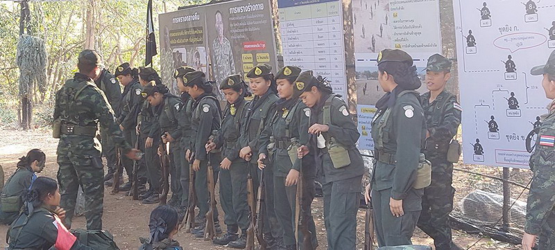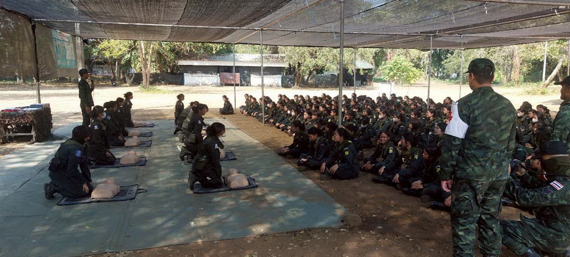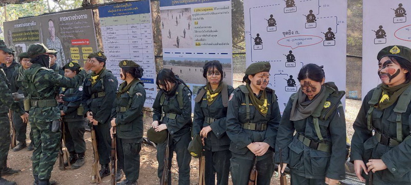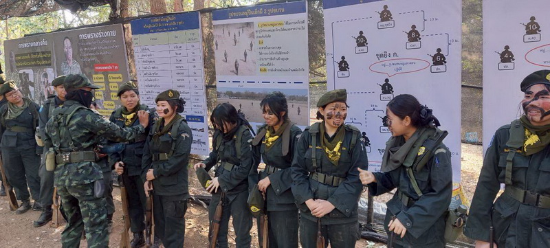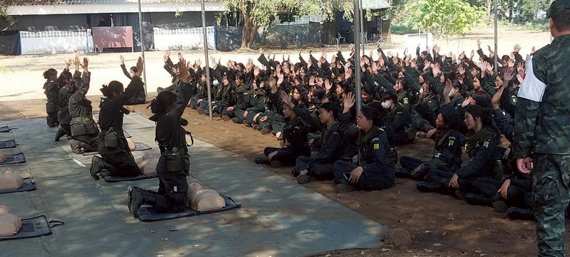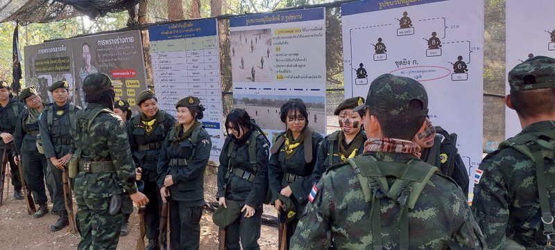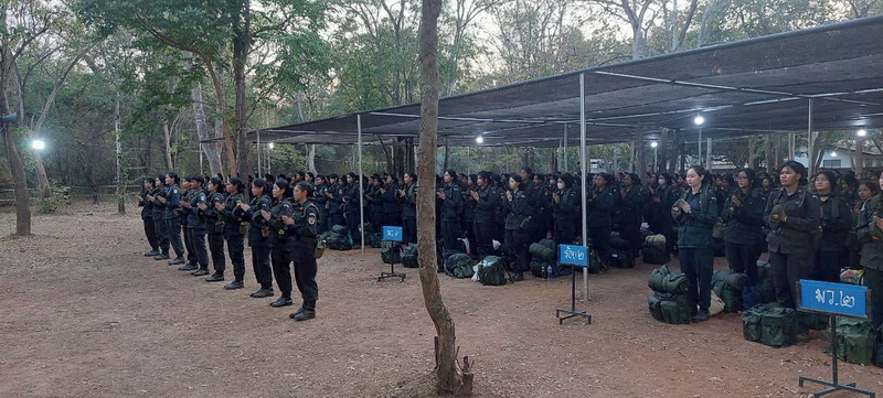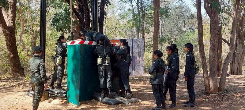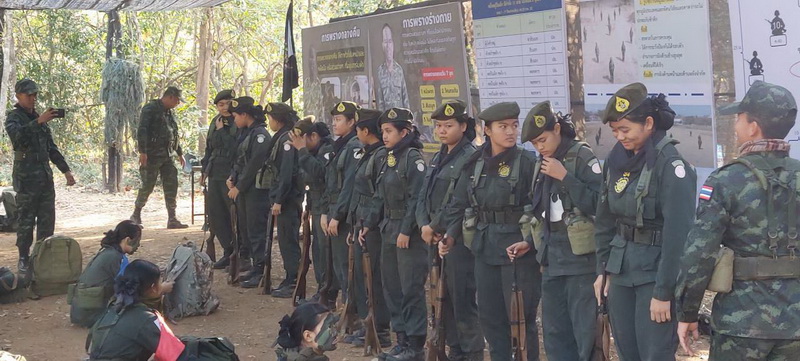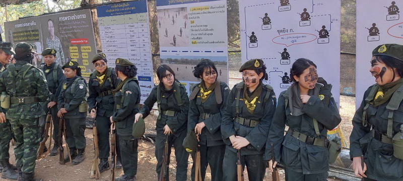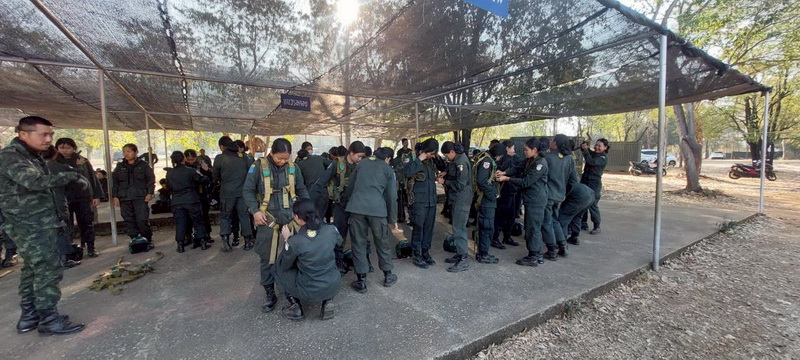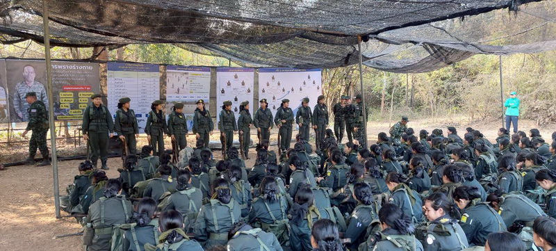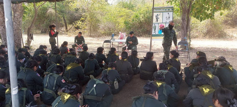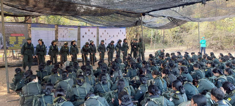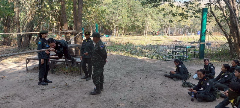 รูปภาพบรรยากาศการฝึกของนักศึกษาวิชาทหารหญิง ปี 2 ณ ค่ายฝึกภาคสนามเขาชนไก่ จังหวัดกาญจนบุรี