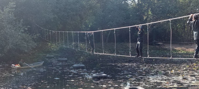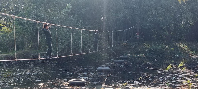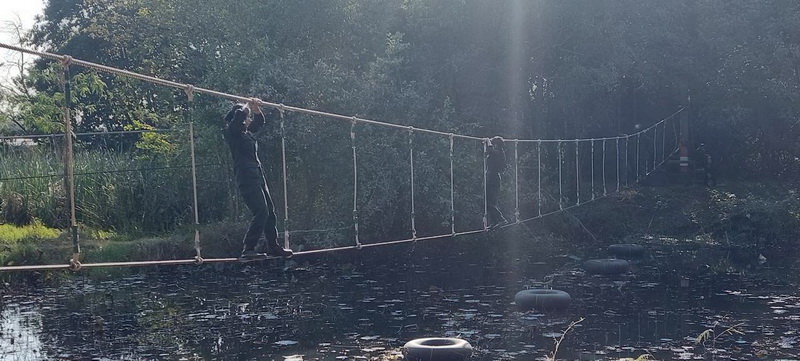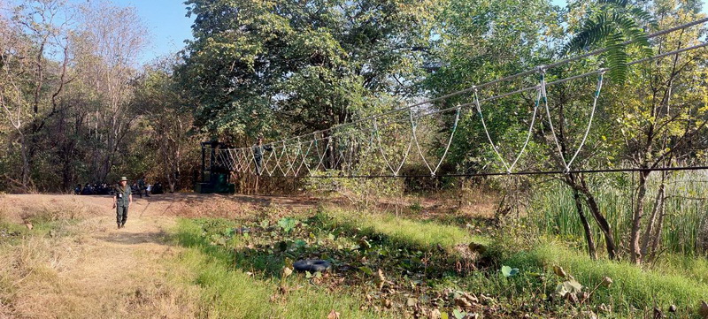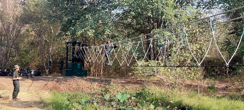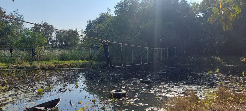 - ฝึกการข้ามลำน้ำด้วยสะพานเชือก