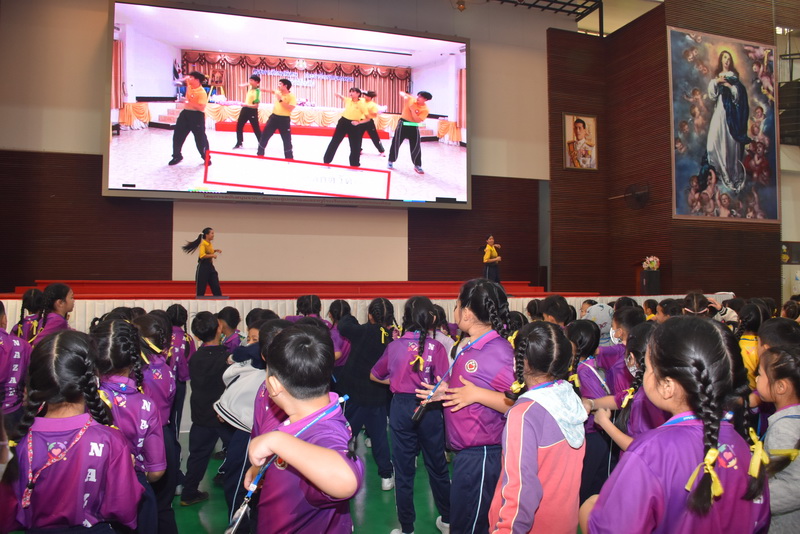 ส่วนในวันอังคารที่ 13 มกราคม 2569 กลุ่มสาระการเรียนรู้สุขศึกษาและพลศึกษา ได้จัดกิจกรรมกายบริหารประกอบเพลง โดยมีนักเรียนระดับมัธยมศึกษาปีที่ 4 นางสาวนันทกาญจน์ เอี่ยมธนากุล และนางสาวภิญญาพัชญ์ พระพรหม เป็นผู้นำกายบริหาร ส่วนในช่วงพักกลางวัน ได้มีกิจกรรม Random Dance ที่อาคารมารีย์สวรรค์ เพื่อเปิดโอกาสให้นักเรียนได้แสดงออกด้านการเต้นตามอิสระ สำหรับผ่อนคลายร่างกาย อารมณ์และจิตใจ ซึ่งได้รับความสนใจจากนักเรียนทั้งระดับประถมและระดับมัธยมเข้าร่วมกิจกรรม และกลุ่มสาระการเรียนรู้วิทยาศาสตร์และเทคโนโลยี ได้ให้นักเรียนนำเสนอนวัตกรรมที่ได้รับรางวัลจากการแข่งขันเทคโนโลยีและนวัตกรรมในงาน " EDBA 2025 BEST & BEYOND Empowering School with Innovation and Heart " ตั้งแต่วันที่ 8 ธันวาคม 2568 ณ โรงเรียนพระวิสุทธิวงศ์ ที่ผ่านมา เพื่อให้นักเรียนทุกคนได้รับชมตัวนวัตกรรม หลักการทำงานและร่วมยินดีจากรางวัลที่ได้รับครั้งนี้ จากผลการแข่งขันระดับมัธยมศึกษาตอนต้น ได้รับรางวันเหรียญทองแดง ชื่อนวัตกรรม Smart Solar Tracker–โซลาร์ติดตามแสงอัจฉริยะ โดยมีนักเรียนที่รับผิดชอบประกอบด้วย