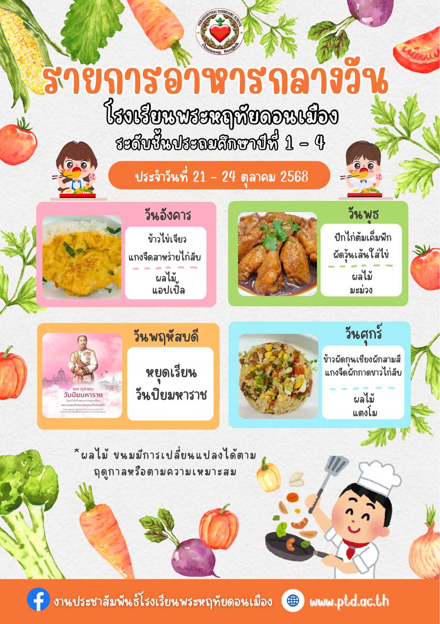 อาหารกลางวันระดับประถมศึกษา ภาคเรียนที่ 2 ปีการศึกษา 2568 เดือนตุลาคม 2568 |